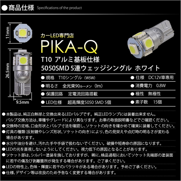 ・規格: T10シングル(W5W)
