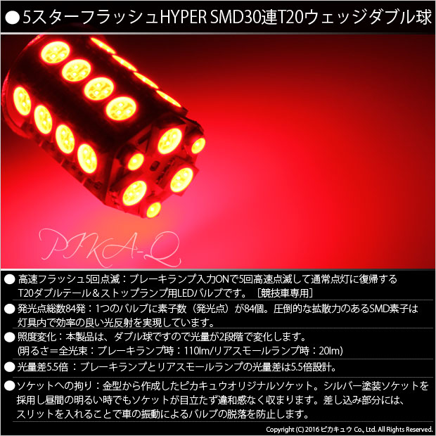T20ダブル 5スターフラッシュ HYPER SMD30連ダブルウェッジ球 LEDカラー:レッド 1セット2個入り [競技車専用] | ||||