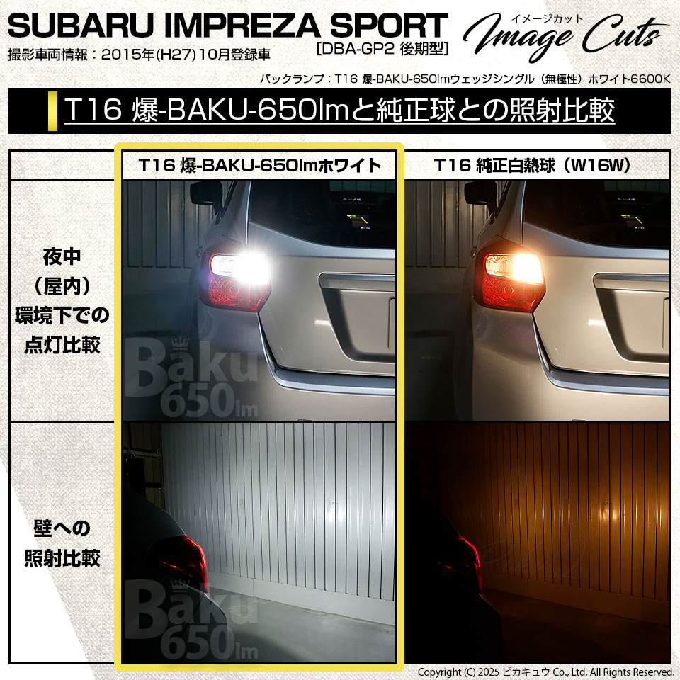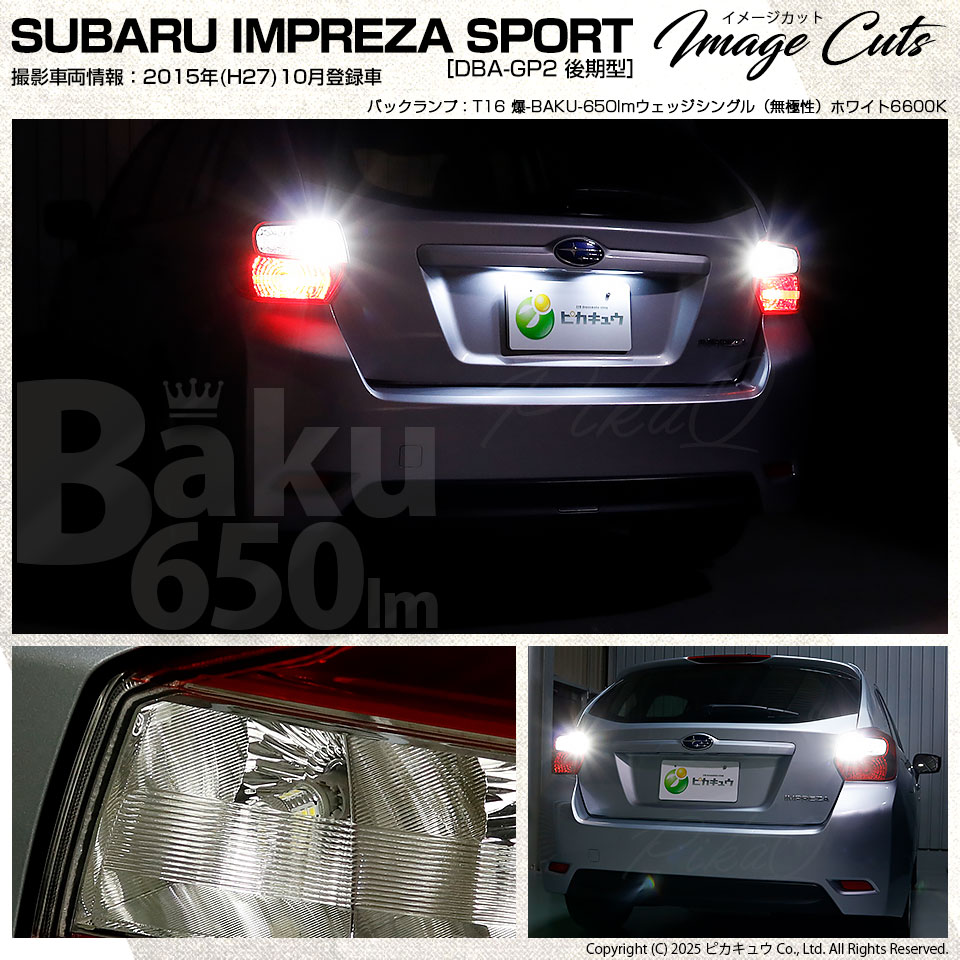 【即納】【メール便可】スバル インプレッサスポーツ[GP系 後期]対応 バックランプ用LED T16 爆-BAKU-650lmバックランプ用LED ウェッジシングル LEDカラー:ホワイト 6600K 無極性 1セット2個入