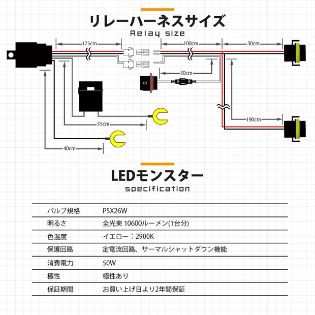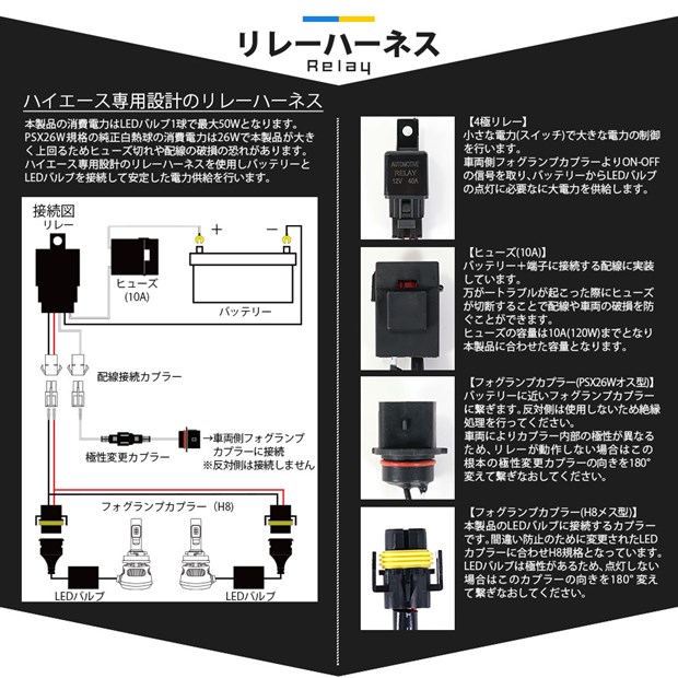 バルブ規格:PSX26W ハイエース専用設計リレーハーネス付