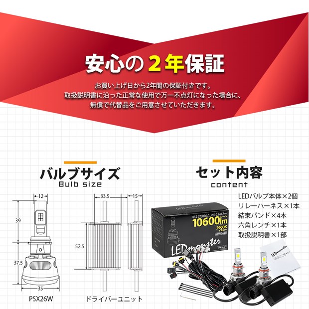 トヨタ ハイエース[200系 4型]対応 LED MONSTER L10600 LEDフォグランプキット バルブ規格:PSX26W 「おすすめ商品」