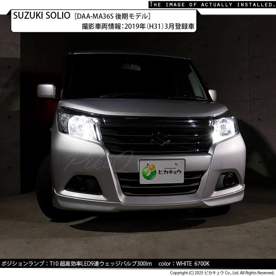 ピカキュウ,LED専門店,LEDバルブ,国産DC12V車,ハイブリッド車対応LEDバルブ,T10,W5W,30mm,ポジションランプ,ライセンスランプ,ルームランプ,全光束300lm,T10純正球の6倍以上の明るさ,18ヶ月保証,スズキ,SUZUKI,ソリオ,SOLIO,MA26S,MA36S,MA46S