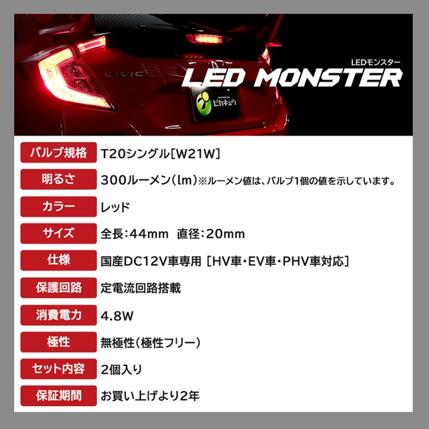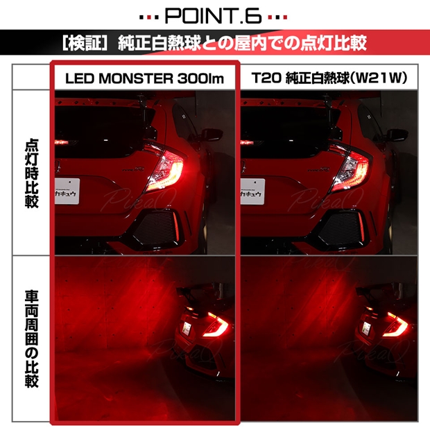 ピカキュウ,LED専門店ピカキュウ,LED,リアフォグランプ,ストップランプ,LED MONSTER,LEDモンスター,t20,T20シングル,ウェッジ球,w21w,赤色,レッド