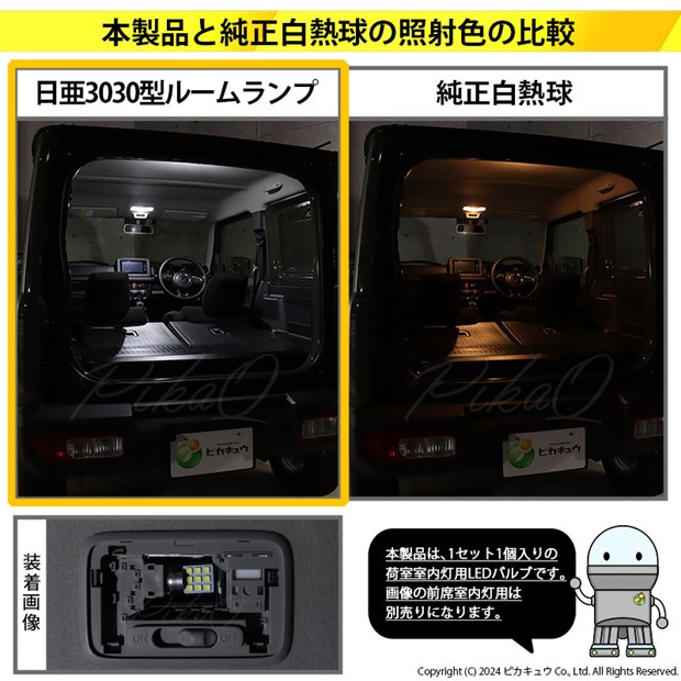 ピカキュウ,LED専門店,LEDバルブ,LED,SMD,T10,W5W,日亜化学工業,日亜,3030,ルームランプ,カーテシ,バニティ,爆光,150lm,150ルーメン,ROOM,スズキ,ジムニー,SUZUKI,JIMNY,JB64W