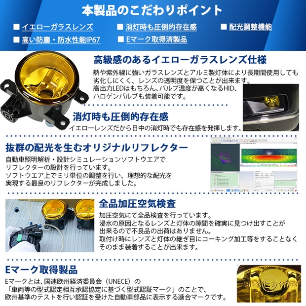 | 高い質感と耐久性を実現するEマーク認証イエローガラスレンズフォグユニット | |