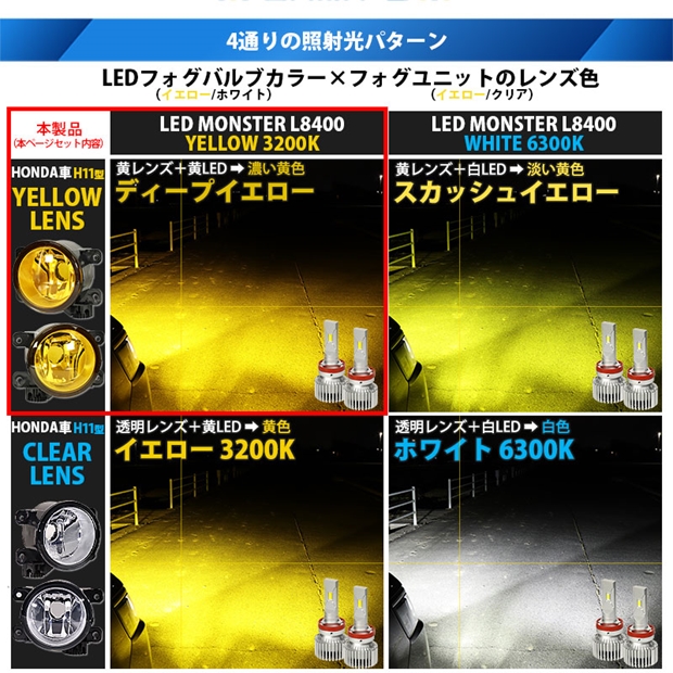 【即納】ホンダ ステップワゴン[RP6/7/8] 純正LEDフォグランプ装着車対応[H11型]イエローガラスレンズフォグランプユニット付 LED MONSTER L8400 イエロー LEDフォグランプキットバルブ規格:H11(H8/H11/H11共通) 「おすすめ商品」