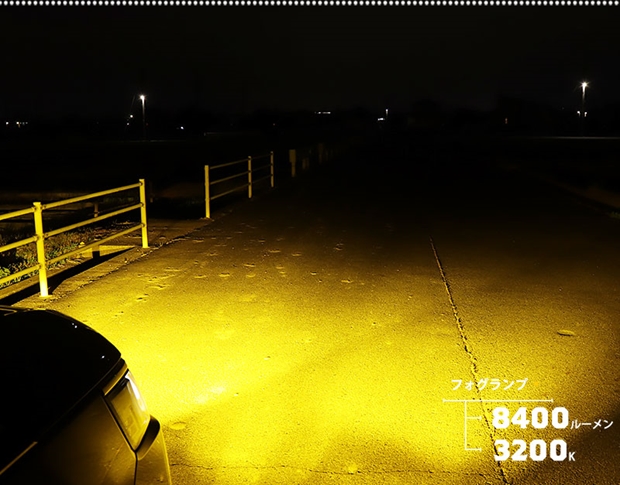 | 明るさ | 全光束8400ルーメン(lm) ※ルーメン値は、バルブ2個(車両一台分)の値を示しています。 |