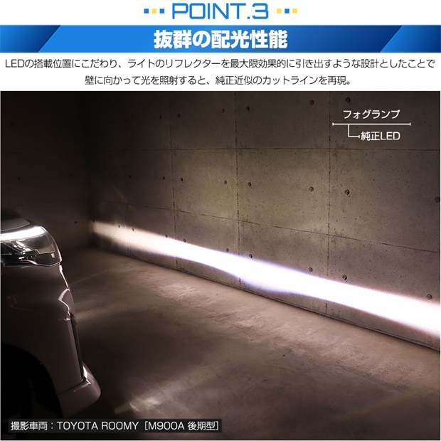 | 純正を凌駕する全光束8400ルーメン。リフレクター性能を最大限に引き出すカットラインを再現する「LED MONSTER フォグバルブ」 | |