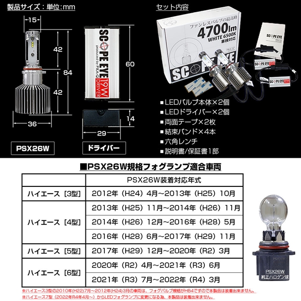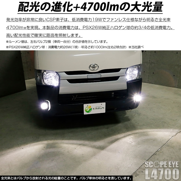 【即納】トヨタ ハイエース[200系 3/4/5/6型]SCOPE EYE L4700 LEDフォグランプ用バルブキット LEDカラー:ホワイト6500K バルブ規格:PSX26W 「おすすめ商品」