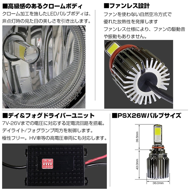 ◆本製品は純正ハロゲンフォグランプ装着車にご使用いただけるLEDバルブです。