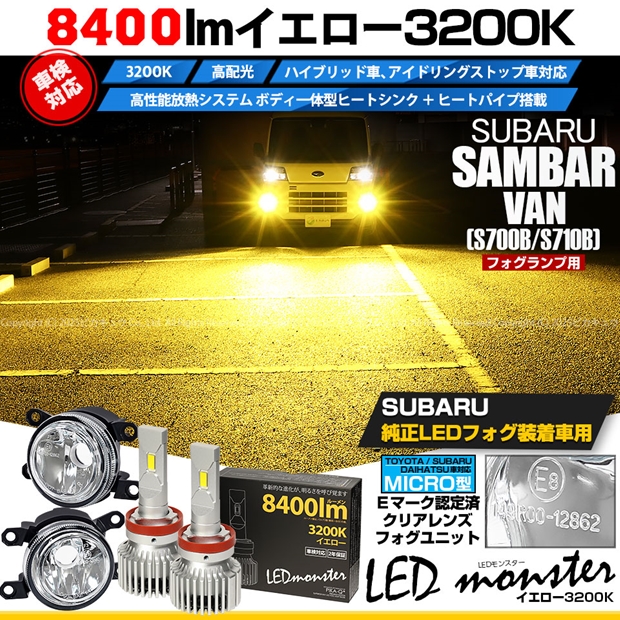 【即納】スバル サンバーバン[S700B/S710B]対応[MICRO型]クリアガラスレンズフォグランプユニット付 LED MONSTER L8400 イエロー LEDフォグランプキット バルブ規格:H11(H8/H11/H16共通) 「おすすめ商品」