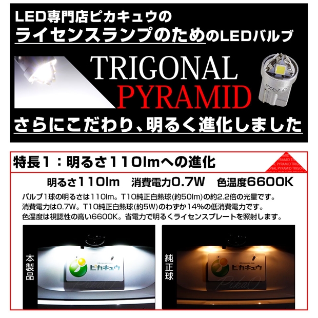 【即納】【メール便可】スバル サンバーバン[S700B/S710B]対応 ライセンスランプ用LED T10 トライアングル ピラミッド 110lm SMDウェッジシングル LEDカラー:ホワイト6600K 無極性 1セット1個入