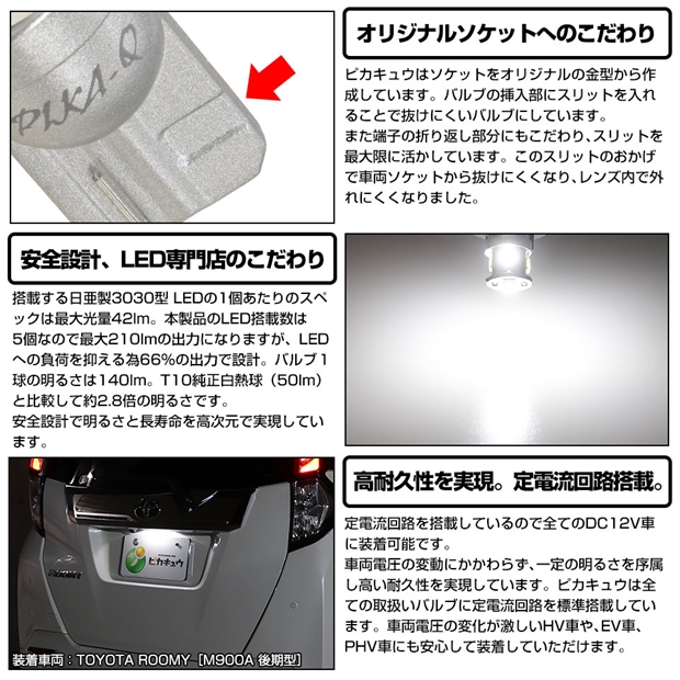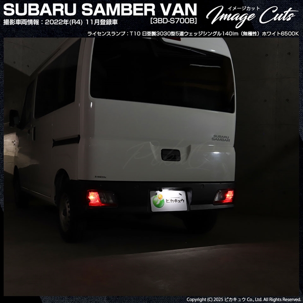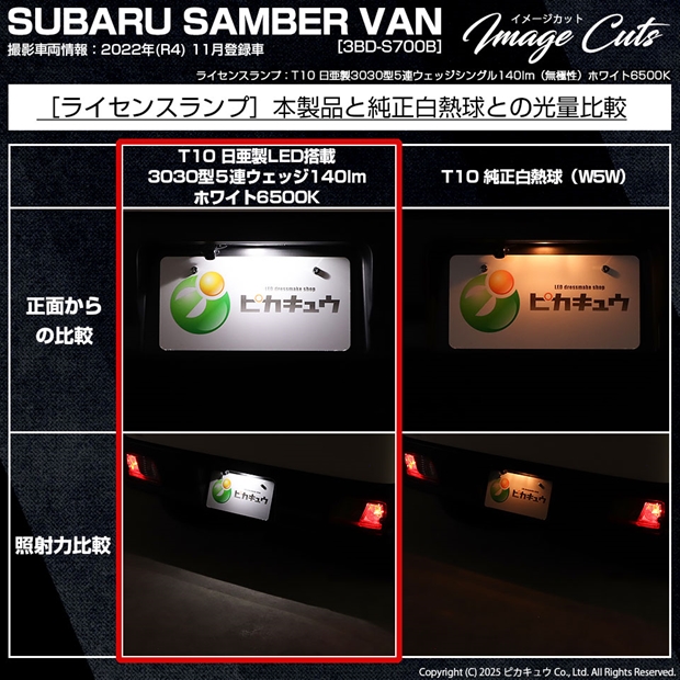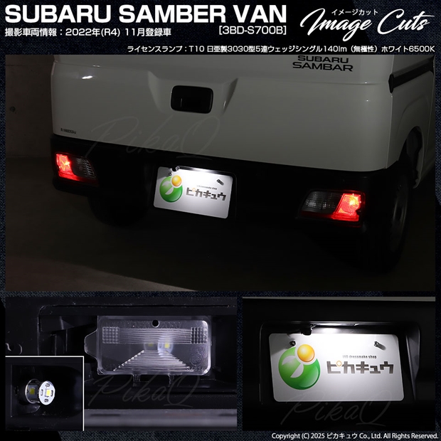 ピカキュウ,LED専門店,LEDバルブ,LED,SMD,T10,W5W,日亜化学工業,日亜,3030,ライセンスランプ,番号灯,爆光,140lm,140ルーメン,SUBARU,スバル,SAMBER VAN,サンバーバン,S700B,S710B,DAIHATSU,ダイハツ,HIJET CARGO,ハイゼットカーゴ,S700V,S710V
