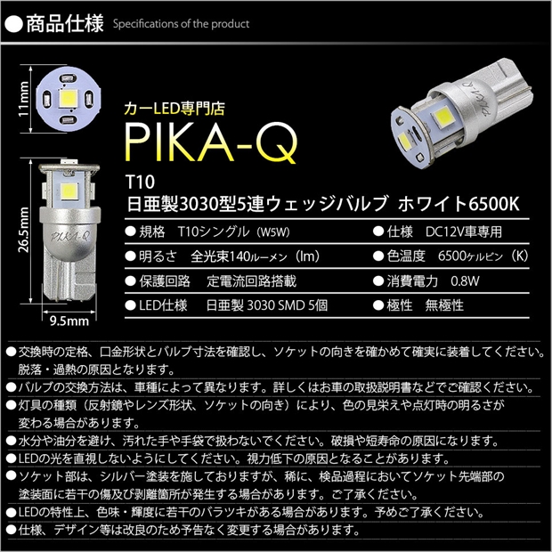 ※純正T10白熱球サイズ 全長:27mm/最大直径:10mm/幅:9.5mm