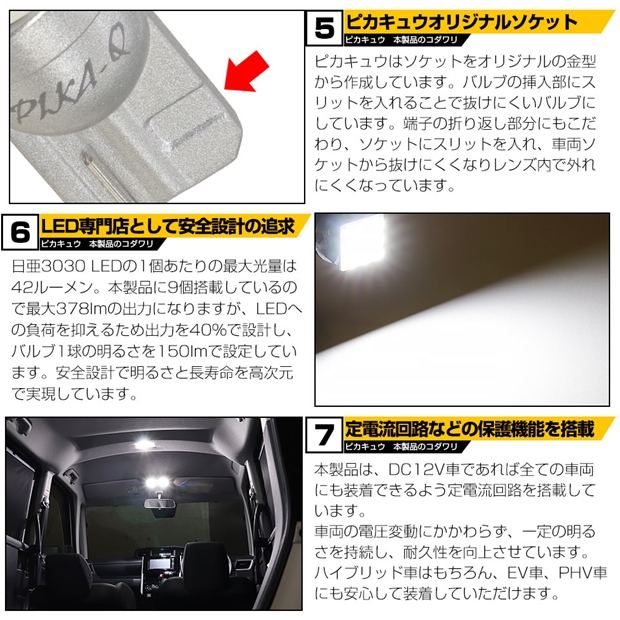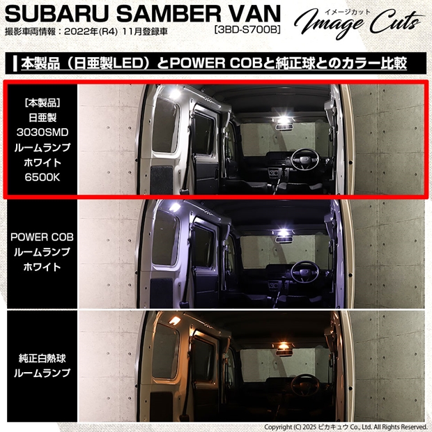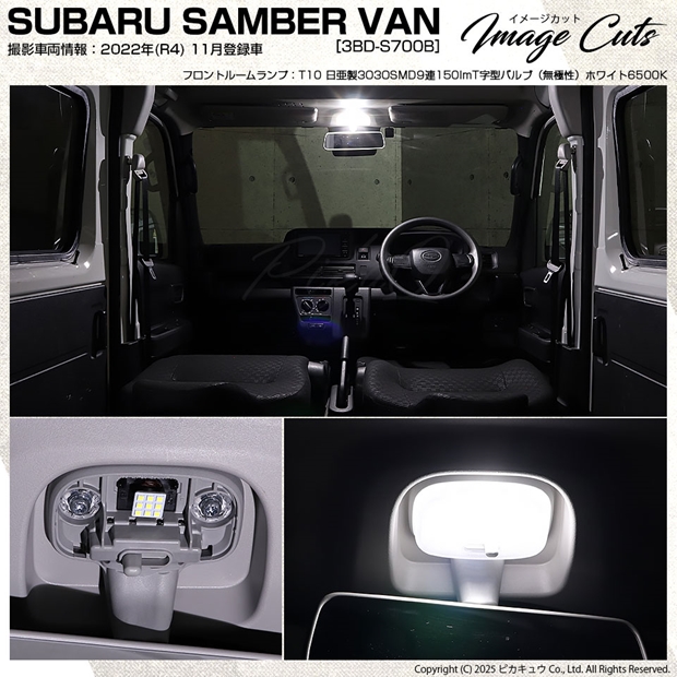 ピカキュウ,LED専門店,LEDバルブ,LED,SMD,T10,W5W,日亜化学工業,日亜,3030,ルームランプ,カーテシ,バニティ,爆光,150lm,150ルーメン,ROOM,SUBARU,スバル,SAMBER VAN,サンバーバン,S700B,S710B,DAIHATSU,ダイハツ,HIJET CARGO,ハイゼットカーゴ,S700V,S710V