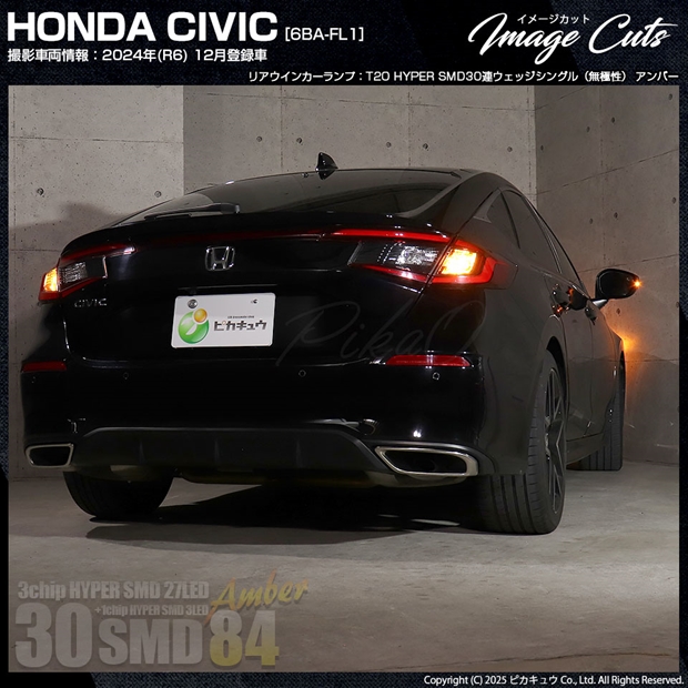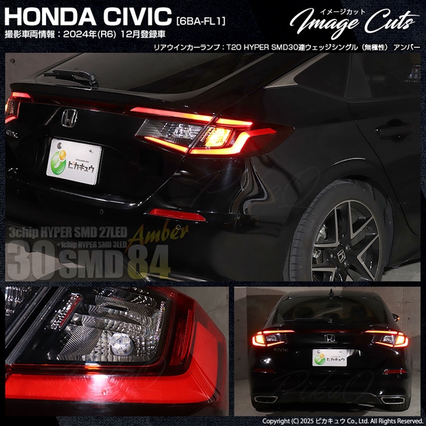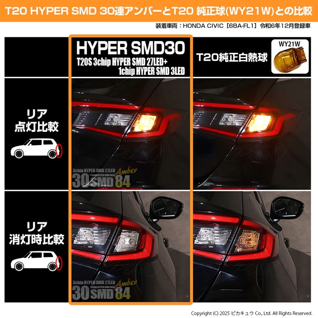 ピカキュウ,LED専門店,LEDバルブ,DC12V車,ハイブリッド車対応LEDバルブ,T20シングル,W21W/WY21W兼用,ウインカーランプ,アンバー,オレンジ,HYPER SMD30連ウェッジシングル球,ホンダ,HONDA,シビック,CIVIC,FL1,FL4