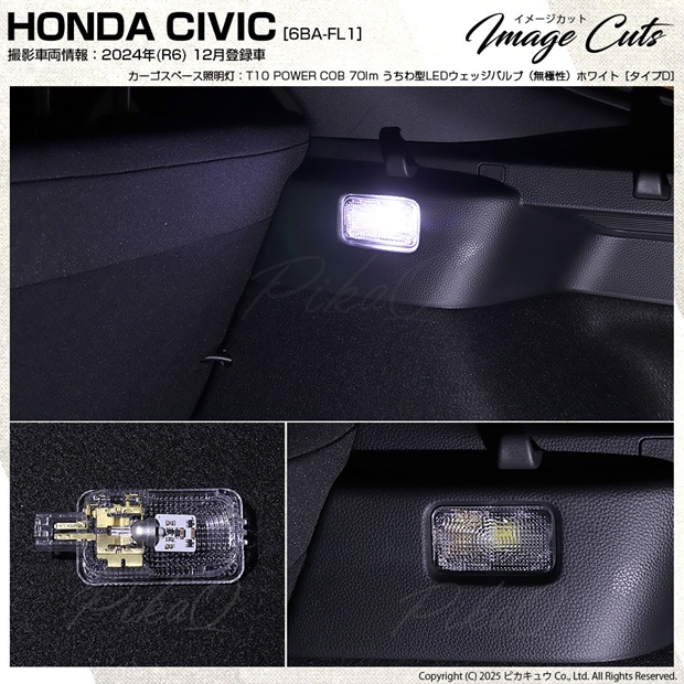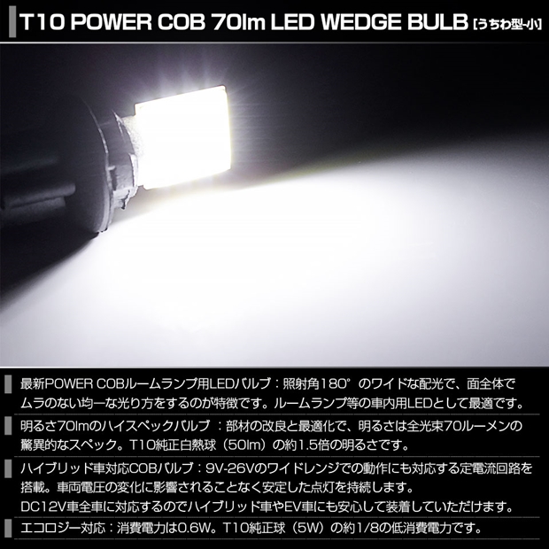 ピカキュウ,LEDバルブ専門店,POWER COB,T10,POWER COB 70lm LED WEDGE BULB,ハイブリッド車対応,定電流回路搭載,ホワイト,全光束70ルーメン,T10LED,ルームランプ,ホンダ,HONDA,シビック,CIVIC,FL1,FL4