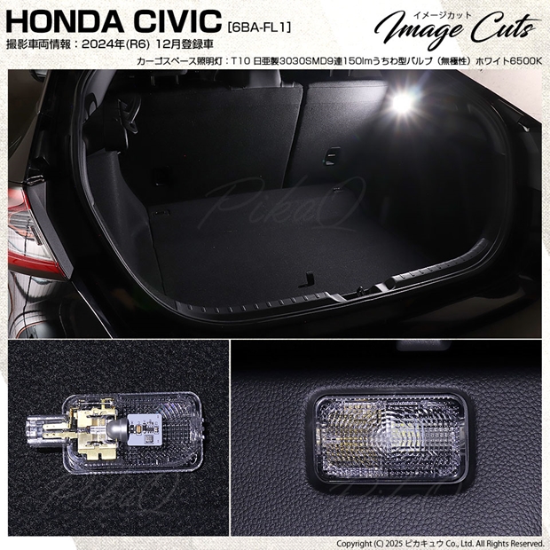 ピカキュウ,LED専門店,LEDバルブ,LED,SMD,T10,W5W,日亜化学工業,日亜,3030,ルームランプ,カーテシ,バニティ,爆光,150lm,150ルーメン,ROOM,ホンダ,HONDA,シビック,CIVIC,FL1,FL4