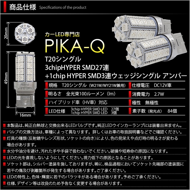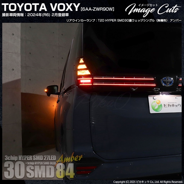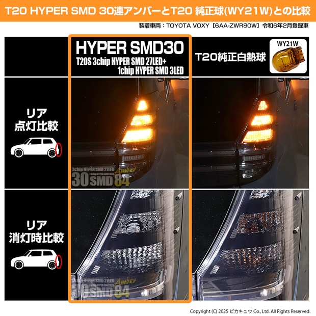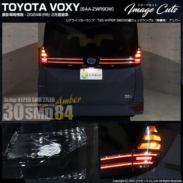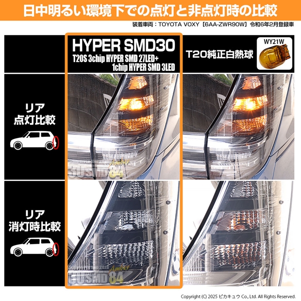 ピカキュウ,LED専門店,LEDバルブ,DC12V車,ハイブリッド車対応LEDバルブ,T20シングル,W21W/WY21W兼用,ウインカーランプ,アンバー,オレンジ,HYPER SMD30連ウェッジシングル球,トヨタ,TOYOTA,ヴォクシー,VOXY,MZRA95W,MZRA90W,ZWR95W,ZWR90W