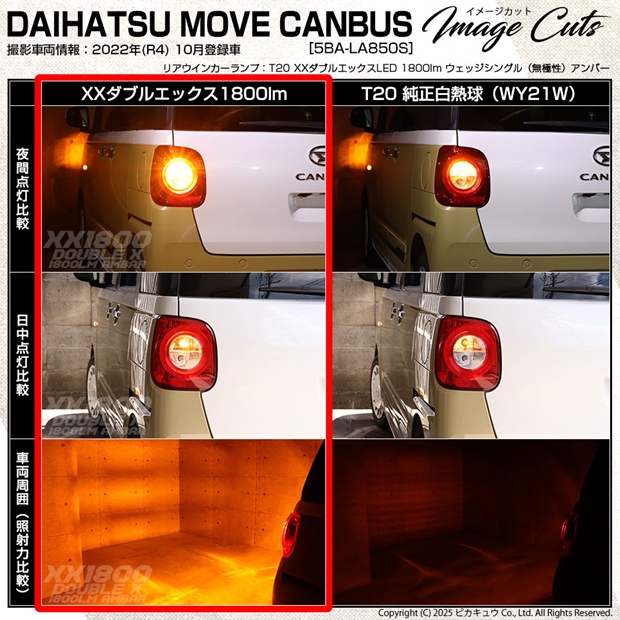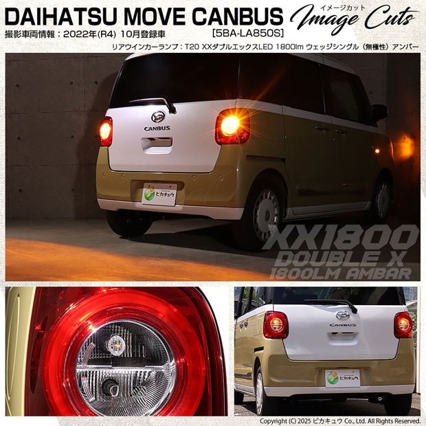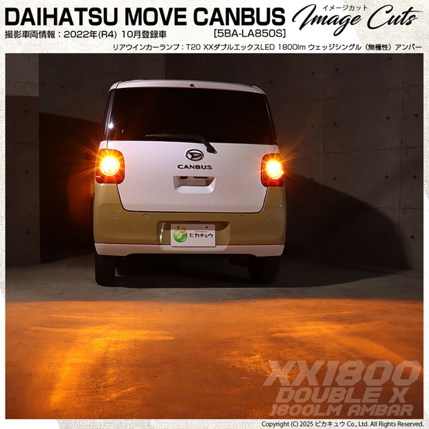 ピカキュウ,LED専門店,LEDバルブ,SMD,LED,T20S,T20シングル,ターンシグナルランプ,ハイフラ抵抗内蔵LEDウインカーバルブ,ハイフラ不要,抵抗不要,ポン付け,アンバー,全光束1800lm,XX,ダブルエックス,ダイハツ,DAIHATSU,ムーヴキャンバス,MOVE CANBUS,LA850S,LA860S