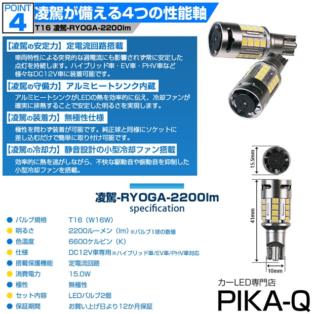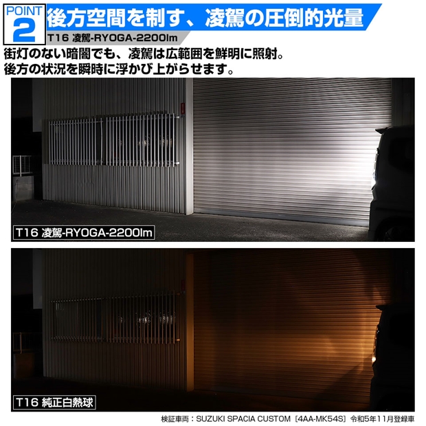 【即納】【メール便可】スズキ スペーシアカスタム[MK54S/MK94S]対応 T16 凌駕-RYOGA2200lm- バックランプ用LEDウエッジバルブ フォグランプ級の明るさ 全光束2200lm LEDカラー:ホワイト6600K 1セット2個入
