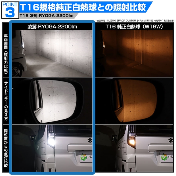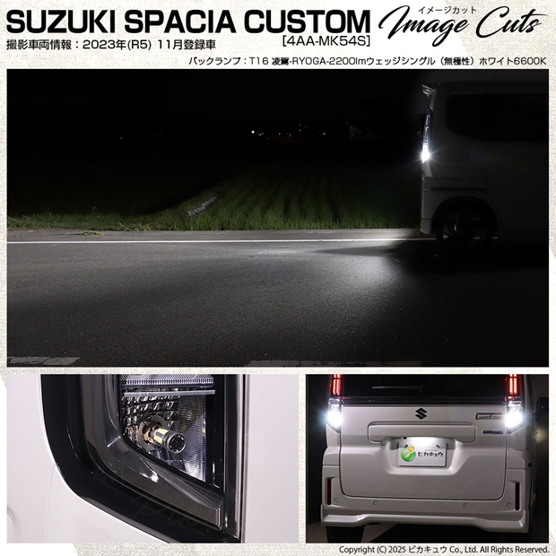 ピカキュウ, LED専門店, T16 LED, バックランプ, 高輝度LED, 凌駕, RYOGA, 無極性, 定電流回路,スズキ,SUZUKI,スペーシアカスタム,SPACIA CUSTOM,MK54S,MK94S