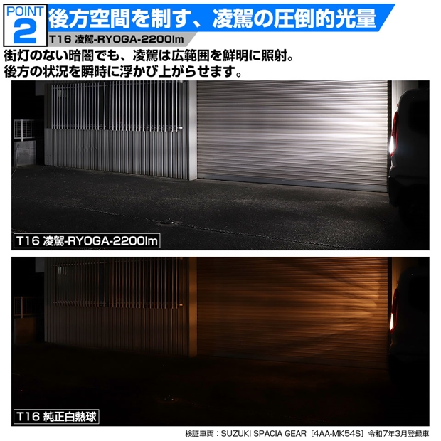 【即納】【メール便可】スズキ スペーシアギア[MK54S/MK94S]対応 T16 凌駕-RYOGA2200lm- バックランプ用LEDウエッジバルブ フォグランプ級の明るさ 全光束2200lm LEDカラー:ホワイト6600K 1セット2個入