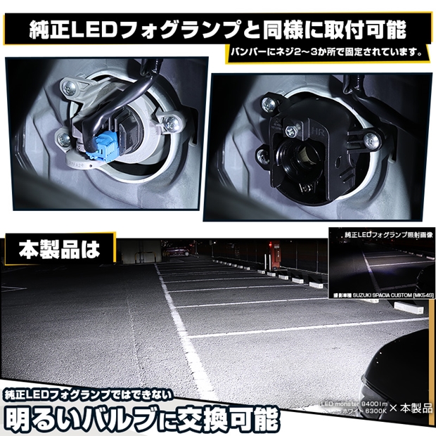 ◆仕様やオプションによっては、純正LEDフォグランプユニットが装着されていても、ステー等の形状が異なる場合や、フォグ後方スペースの問題で装着できない場合がございます。必ずご購入前に車両に装着されているフォグランプの形状、寸法をご確認ください。