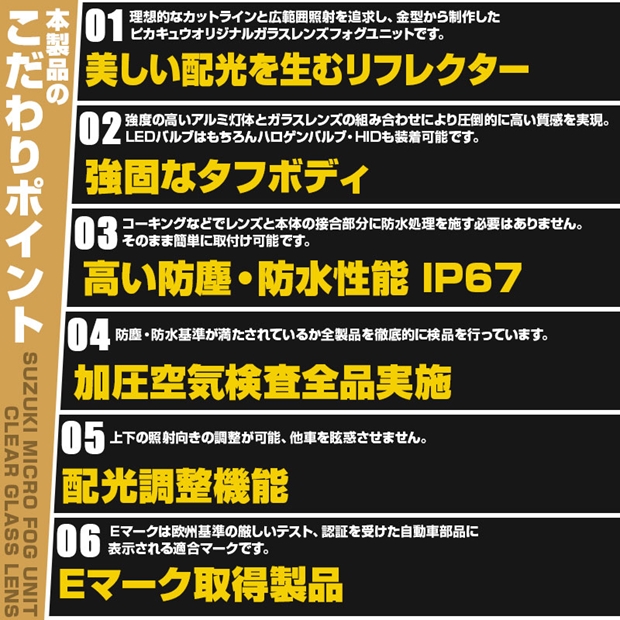 ピカキュウ,LED専門店ピカキュウ,ピカキュウledフォグ,ガラスレンズ付,フォグユニット,MICRO,MICRO型,マイクロ型,マイクロ,フォグランプ,フォグユニット,SUZUKI,スズキ車対応,純正LEDフォグと交換,クリアレンズ,透明レンズ,ガラスレンズ,H8対応,H11対応,H16対応