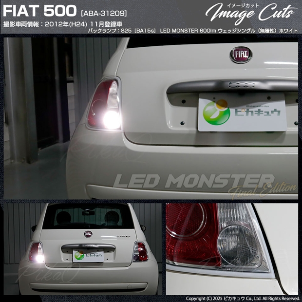【即納】【メール便可】フィアット 500[ABA-31209 前期]対応バックランプ用LED S25s [BA15s]LED BACK LAMP BULB NEO15 600lm シングル口金球 ピン角180° LEDカラー:ホワイト 無極性 1セット1個入 ¥2,460(税込) -