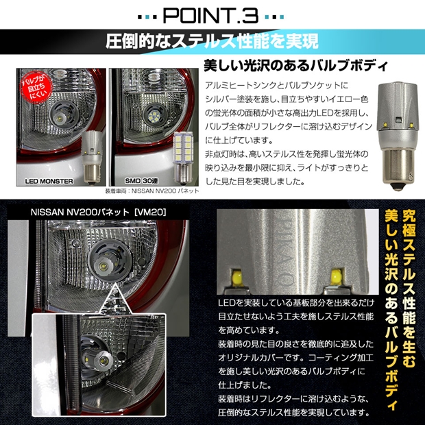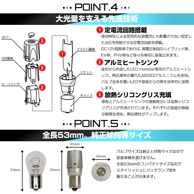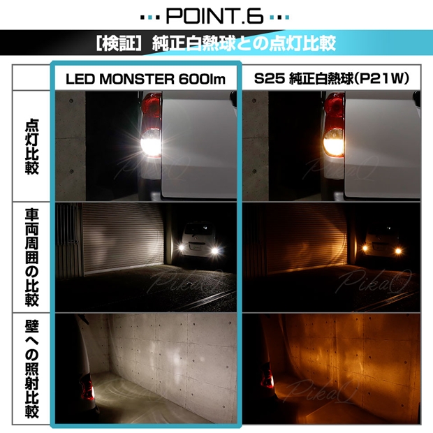 ピカキュウ,LED専門店ピカキュウ,LED,バックランプ,後退灯,LED MONSTER,LEDモンスター,s25,S25シングル,ピン角180°,ba15s,p21w,白色,6500k,ホワイト