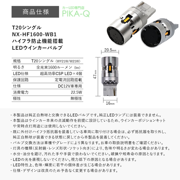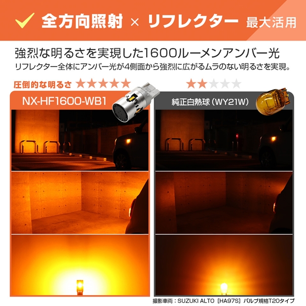 【即納】【メール便可】T20s NX-HF1600-WB1 ハイフラ防止抵抗内蔵 ウインカーランプ用LEDバルブ 1600lm カラー:アンバー 1セット2個入